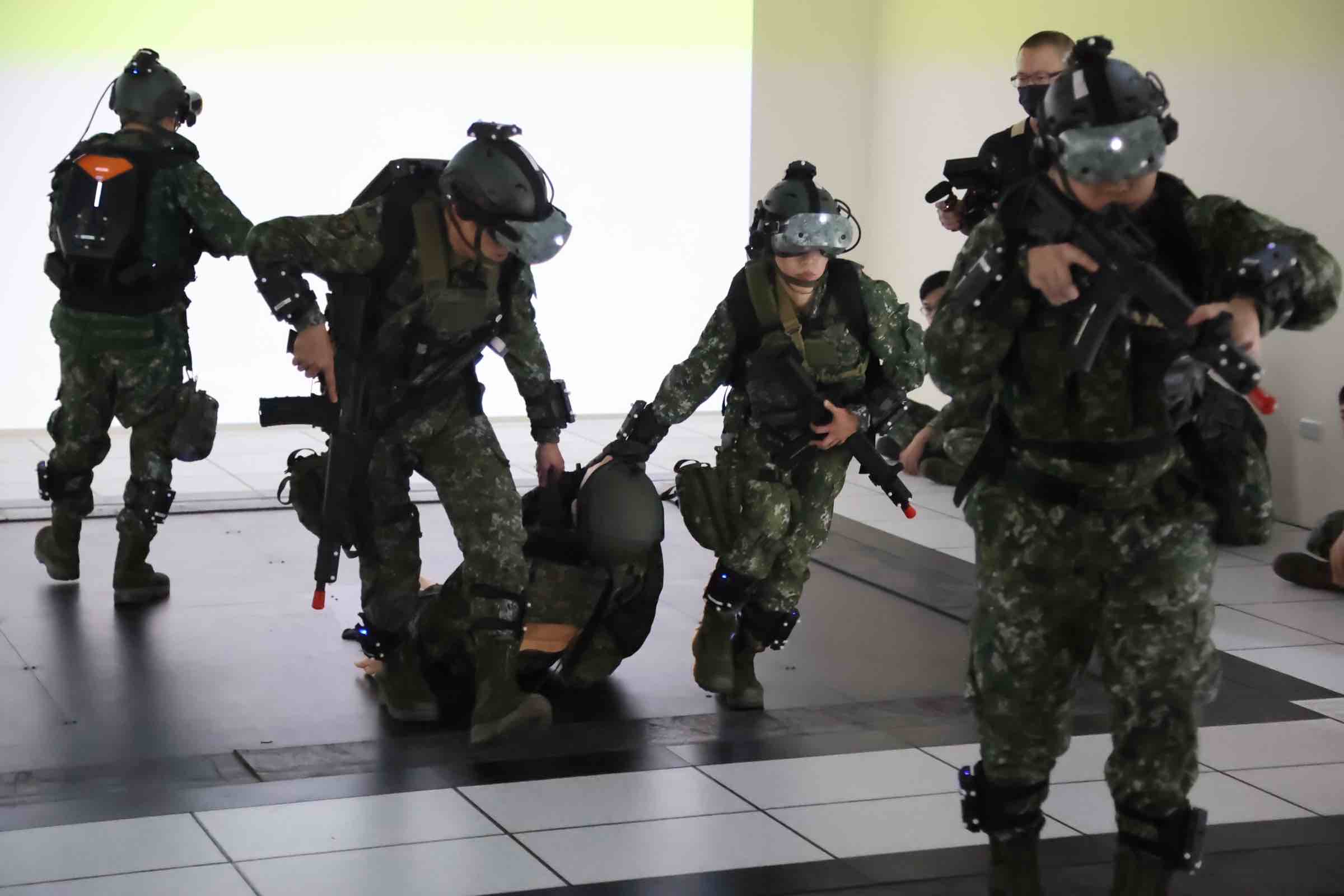 戰術戰傷情境教室則是以實境VR來訓練,包含灘岸、城鎮等場景,與重大災情教室不同的是它是單面螢幕,學員手腳及身上需配戴全副感應裝置以及VR眼鏡,你真的槍枝上也有感應裝備,用來模擬小部隊戰鬥三階段,首先是小部隊索敵、接戰,同時傷患產生實施敵火下反擊及自救互救,VR情況中小隊隊員需利用虛擬的掩蔽物與敵交火,同時將傷患移動除敵方火線外,配合高階假人實施戰場急救,槍聲、爆炸聲、模擬戰場的煙霧及假人傷患的斷肢大量失血等,未經訓練的學員有可能就慌了手腳愣在原地,或是怎樣都無法幫傷患止血,甚至是小隊未做好掩護結果全隊都成了待救傷患團滅,不斷的模擬訓練才能在真正情況時熟練反應。