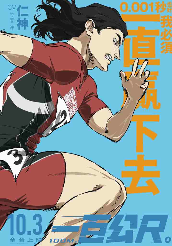 全心投入跑步,想藉此忘卻現實的「小宮」則由曾為《狼的孩子雨和雪》、《怪物的孩子》、《龍與雀斑公主》、《鈴芽之旅》等多部賣座電影獻聲的染谷將太配音。對於小宮急著取得成果的個性很有共鳴的染谷表示:「我很用心詮釋,希望觀眾也會看得屏氣凝神。」電影《一百公尺。》10月3日全台戲院上映。