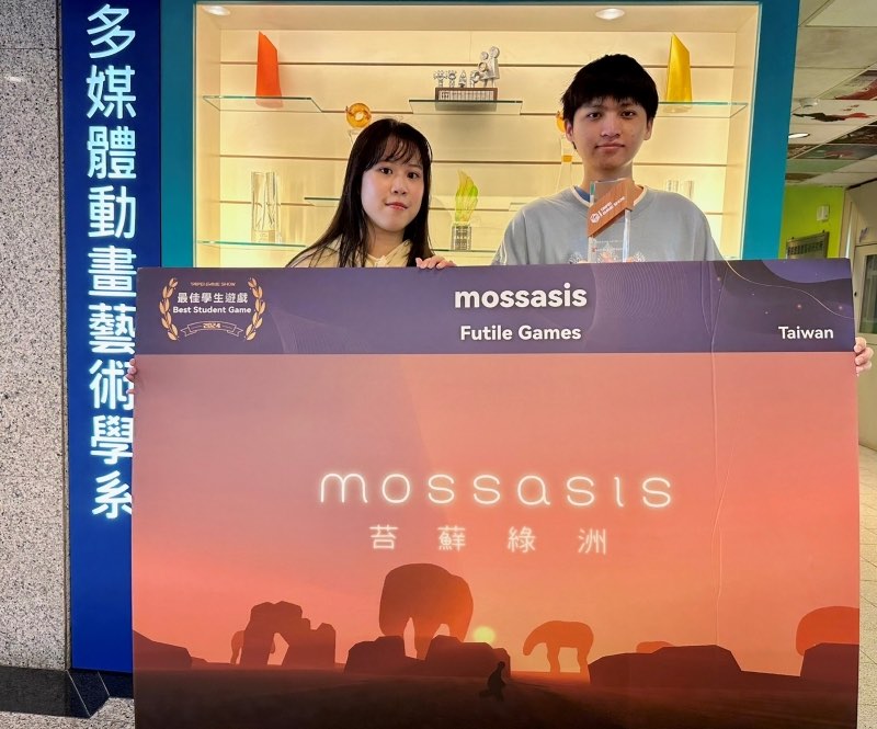 【軍傳媒/軍風生活】由台北國際電玩展舉辦的Indie Game Award獨立遊戲大獎,2024年首度增設「最佳學生遊戲」,並由台灣藝術大學多媒體動畫藝術學系學生製作的《苔蘚綠洲》奪下,團隊坦言,開發的動機很簡單,只是因為畢業製作需要一個成品,志同道合的3位成員便一拍即合,組成「浮苔」並開啟了與苔蘚的奮鬥歷程,製作人之一的簡安廷指出,苔蘚給人的刻板印象,不外乎陰暗潮濕、形象不起眼,若放到現實社會,好似暗喻著每個人在社會裡默默奮鬥的過程;同為製作人的同學周芷萱則偷偷爆料:「他自己就很像苔蘚人啊!」