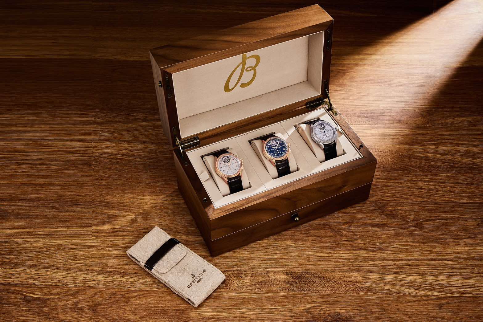 瑞士高級鐘錶品牌BREITLING百年靈,以品牌旗艦之作Premier B21 Chronograph Tourbillon 42 陀飛輪計時腕錶三件式套組,於台北101 World Masterpiece 頂級珠寶鐘錶大賞驚艷登場。全球僅此一套的絕對珍稀創作,完美彰顯品牌於複雜機芯與詩意設計的極致追求,猶如為永恆時間譜寫的一首交響樂章,彷彿在時間的無垠宇宙中,透過極致工藝捕捉瞬間的永恆。