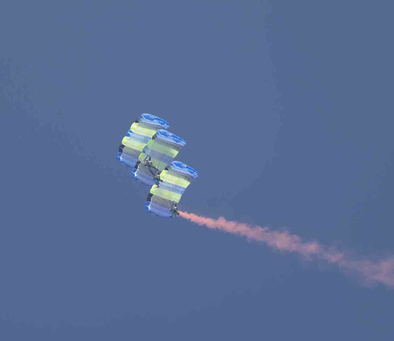這個階段會要跳傘20次,主要著重在訓練姿態變化、例如雙人接力(靠空中姿態的穩定)、疊傘(靠操傘技巧)、這階段會依照人的技術層面作分流。