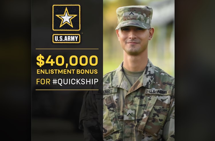 美國陸軍於今年8月25日公佈,只要是公佈後在2022年9月30日前簽屬志願服役4年的合約(4年時間不包含新兵訓練期間),就會提供每人4萬美元的獎勵金,美國陸軍徵兵司令部司令凱文維林少將表示,“在當前環境下招募是一項挑戰,我們現在有職位需要填補,我們的軍隊指望我們迅速填補這些培訓空缺,因此我們必須提供激勵措施,以激發人們對關鍵職業領域的興趣。”