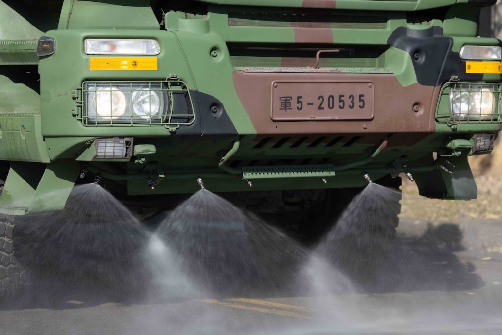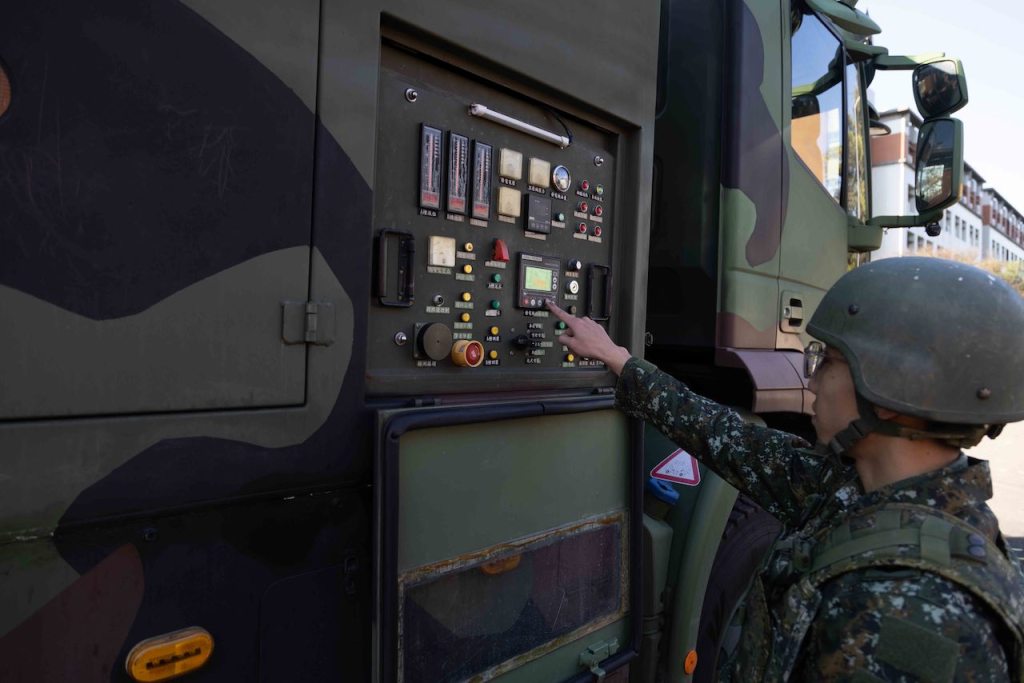 至於平常的訓練內容,可以大致分為固定跟移動兩種模式,「固定」模式主要是教裝備的操作、噴頭的安裝、防護服的穿著等。移動式包含車輛裝備的操作,從汲水、藥劑的添加、移動式噴灑方式、以及事後的自身人員清消、裝備及車輛的清污檢整等。