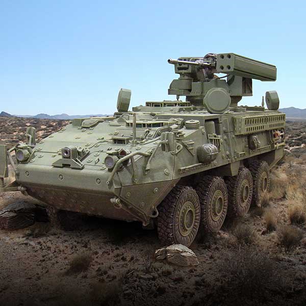 2018年9月,萊昂納多LEONARDO DRS獲得美國陸軍合約,提供五台原型任務設備包 (Mission Equipment Packages,MEP),武裝以XM914E1(30mm)機砲、M240(7.62mm)同軸機槍、刺針和地獄火飛彈,以提供對地對空的保護及攻擊能力,同時還可以遠距離摧毀各式無人機的威脅,目前原型車已經全部交付並且佈署到歐洲驗證。M-SHORAD雷達及紅外線感測器是採用RADA North America的多領域雷達Multi-mission Hemispheric Radar (MHR),能同時偵測和跟踪多種威脅。四個MHR面板如同小型神盾般提供連續的360度空中監視。此外,萊昂納多LEONARDO DRS整合了敵我識別 (IFF) 和前沿區域防空指揮與控制(FAAD C2)網絡。 M-SHORAD的方案提供了必要的機動性、火力和保護力,提供完全集成的偵測、識別、跟踪和擊敗能力。安裝的解決方案包括動能擊敗“硬殺傷”和電子戰“軟殺傷”能力。以便在小單位戰術級別的旅戰鬥隊 (BCT) 內移動和機動。由於車輛的機動性和殺傷力,這些能力也可用於保護大型設施和關鍵基礎設施。