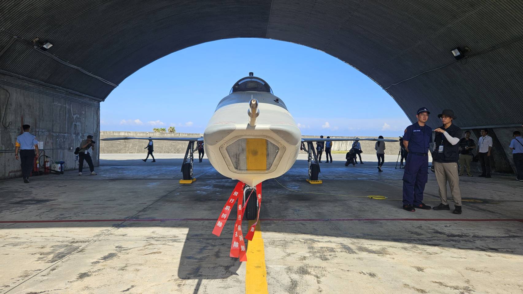 今天空軍展示飛機出勤前所需裝掛自衛用AIM-9P4飛彈,作業開始前都會執行人員安全檢查及靜電釋放作業,並將身上的手錶、戒指等尖銳物取下,之後執行潛力裝掛。